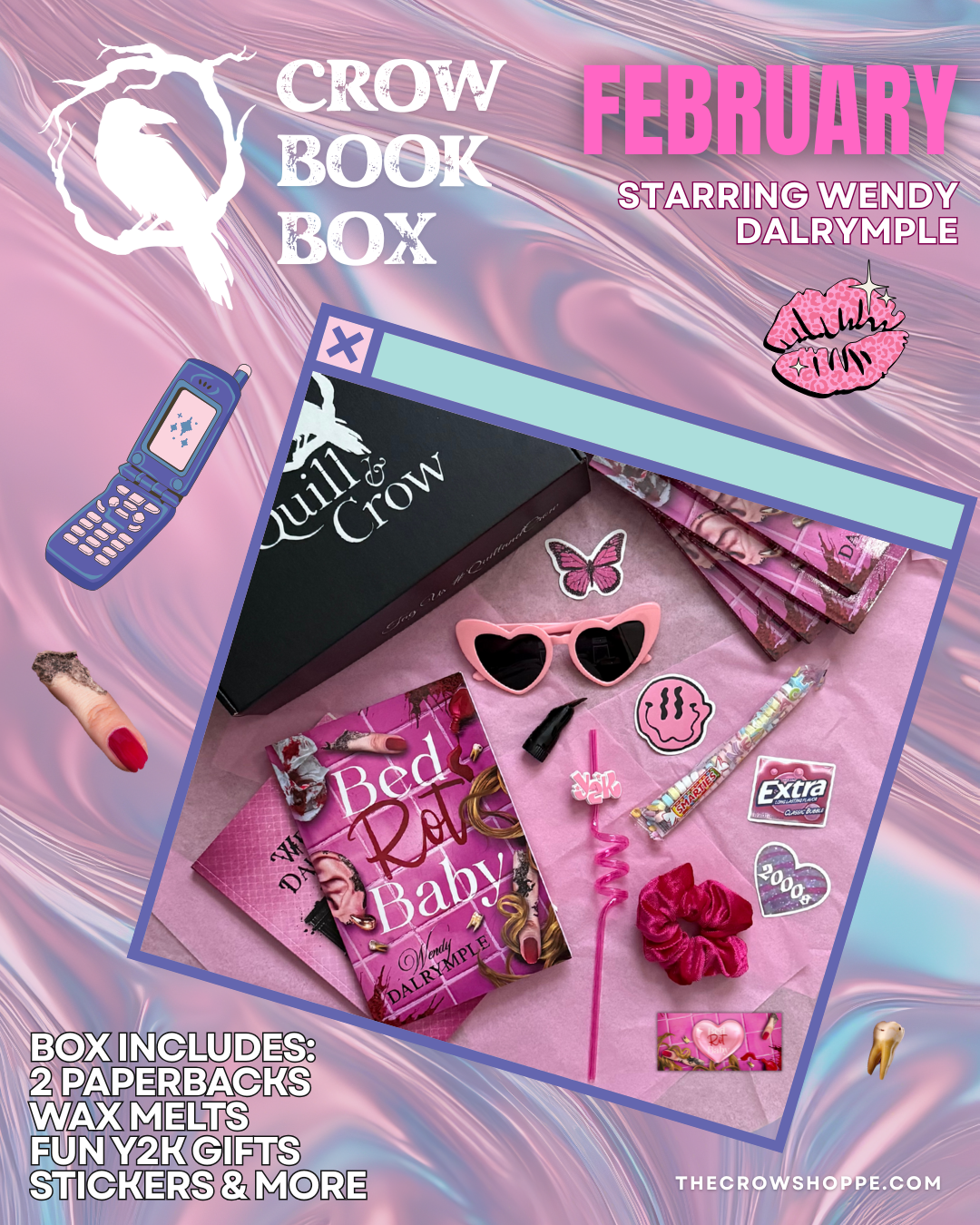 Get your favorite Q&C titles and extra Gothic goodies delivered right to your door, hassle free. Our monthly Crow Book Box contains Quill & Crow's latest release, plus a bunch of extra goodies including stickers, bookmarks, soy wax melts, and more. Each month is a themed surprise! Sign up now and get your first box shipped on February 1st. Cancel/pause anytime.