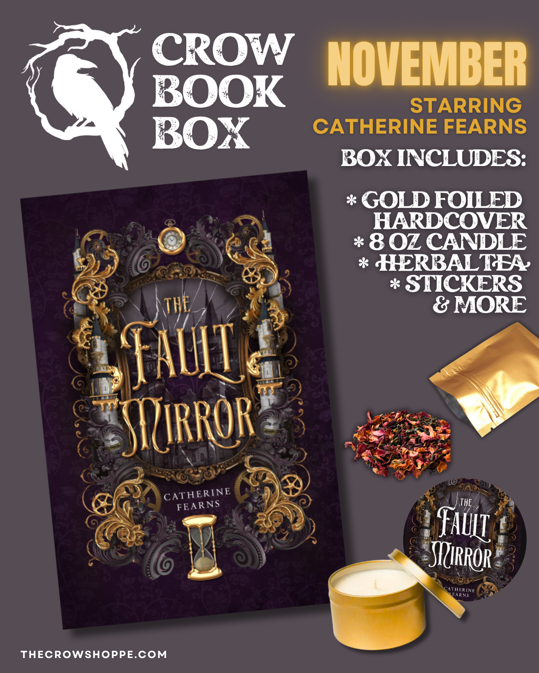 Get your favorite Q&C titles and extra Gothic goodies delivered right to your door, hassle free. Our monthly Crow Book Box contains Quill & Crow's latest release, plus a bunch of extra goodies including stickers, bookmarks, soy wax melts, and more. Each month is a themed surprise! Sign up now and get your first box shipped on November 1st. Cancel/pause anytime.
