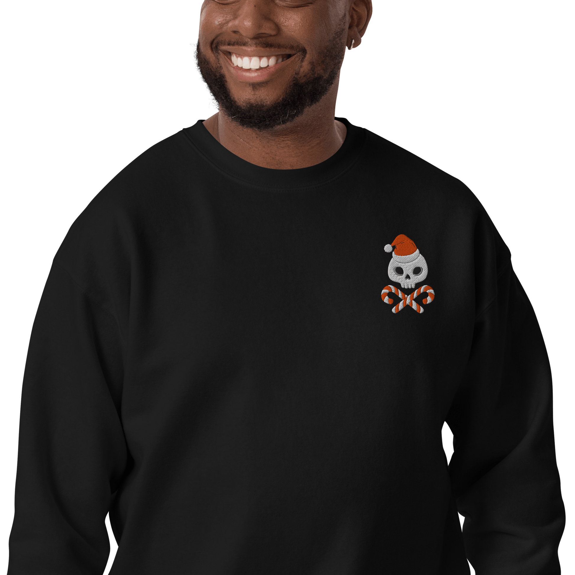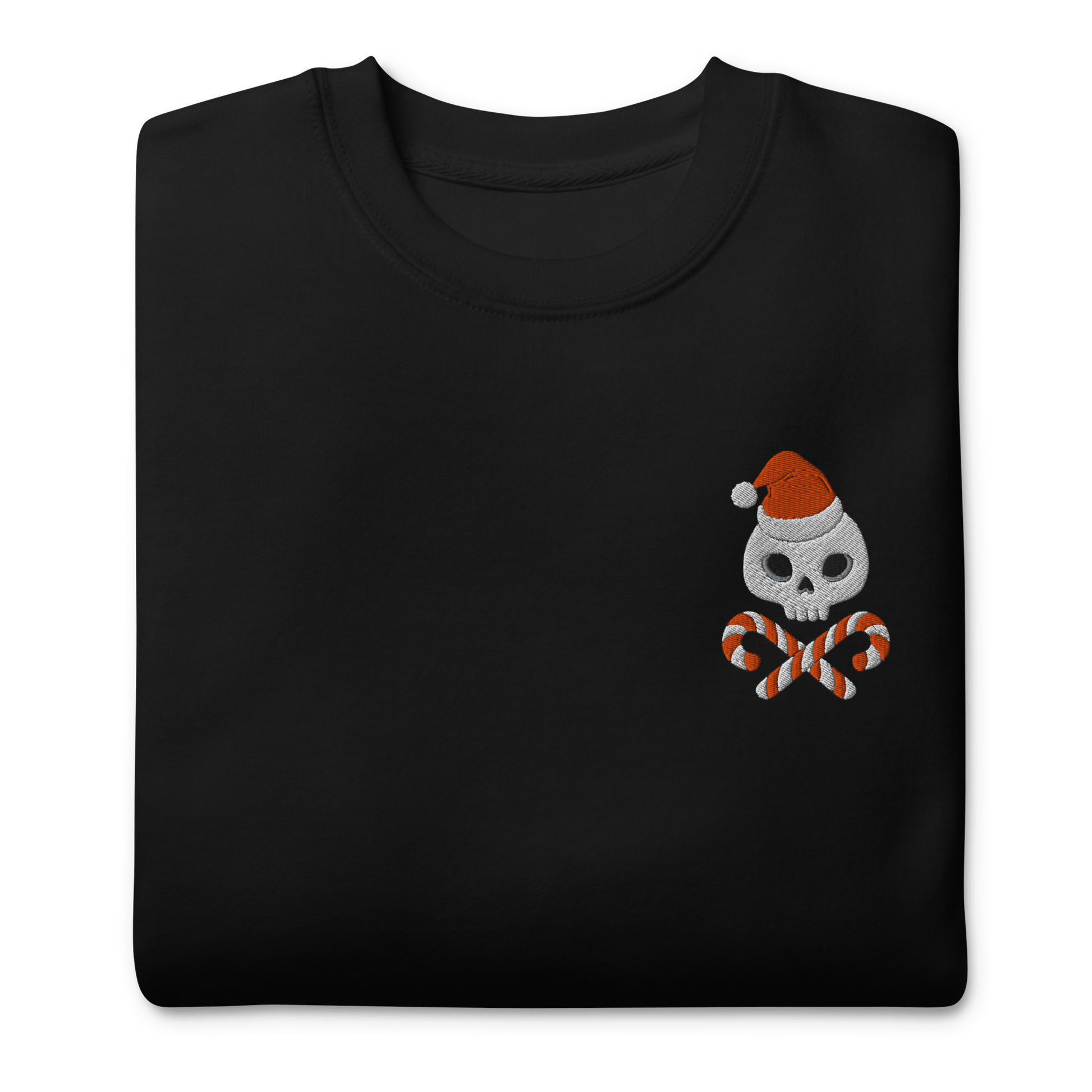 Add a sweet twist to spooky season with the Candy Bones embroidered sweatshirt. Featuring skull and cross candy canes on the left chest, this cozy gothic piece brings just the right mix of cute and creepy for your holiday wardrobe.
