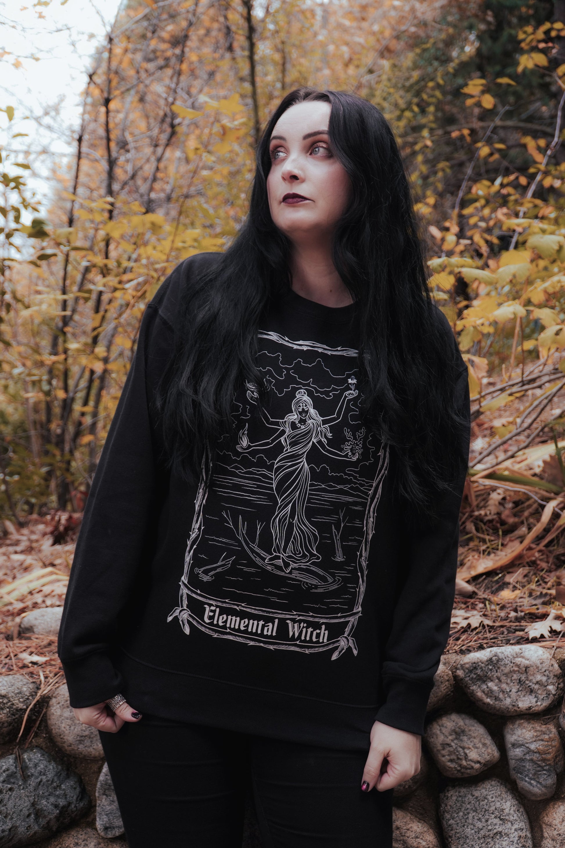 Earth, air, fire, and water the Elemental Witch Sweatshirt calls to those who feel the pulse of the universe in every breath. Crafted for the witches who weave balance from chaos and find meaning in the natural and the unseen, this piece embodies the sacred connection between power and peace.