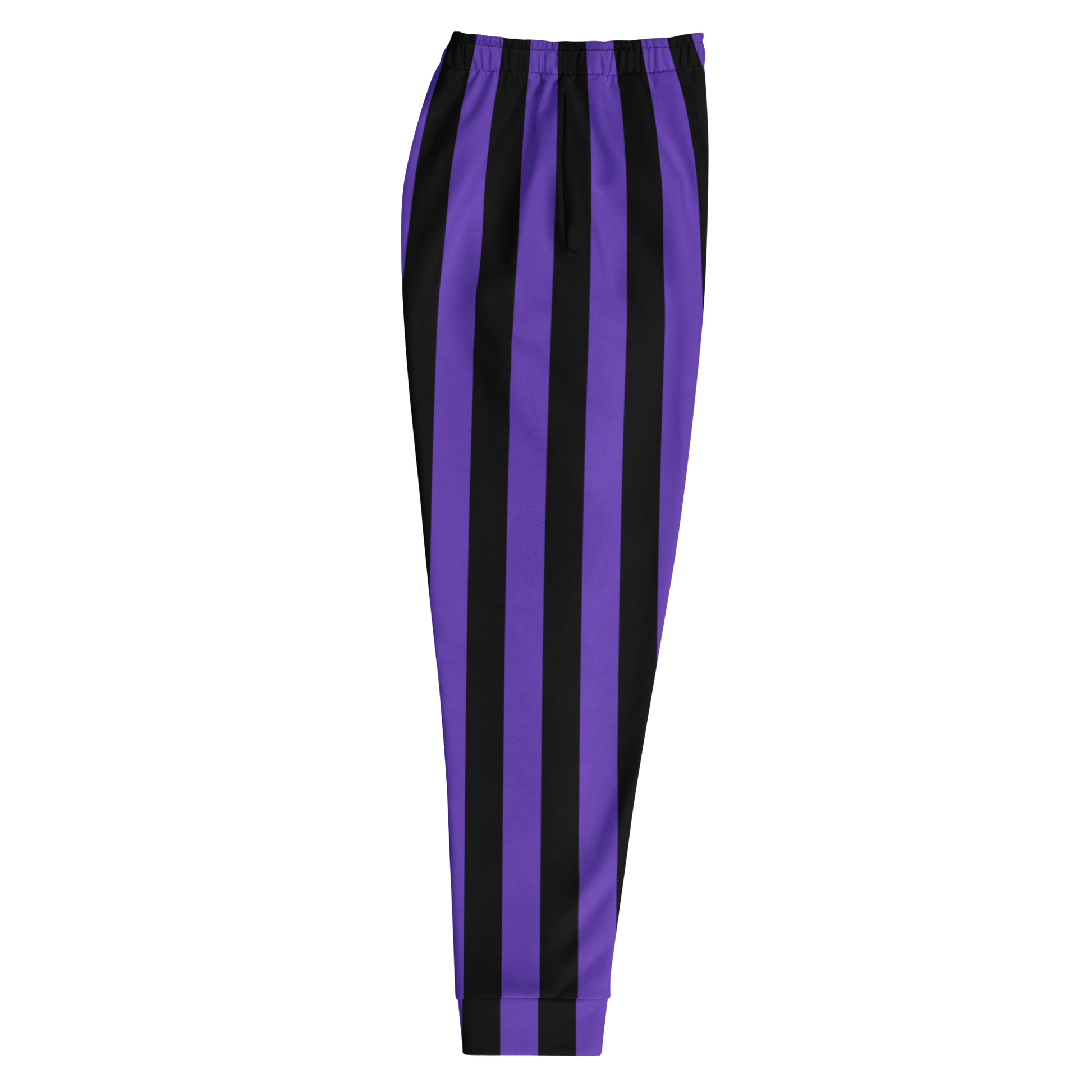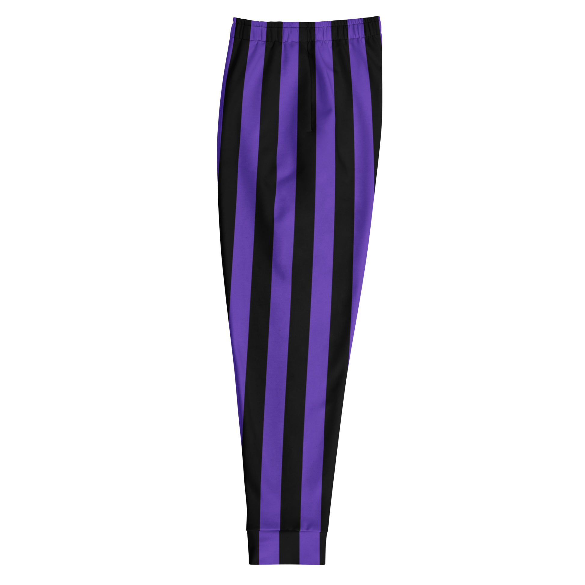 Stay spooky and comfy with these striped unisex joggers inspired by the iconic Nevermore Academy uniforms. Made with recycled polyester and spandex, they feature a soft cotton-feel exterior, brushed fleece interior, cuffed legs, and practical pockets—perfect for lounging or casual streetwear.
