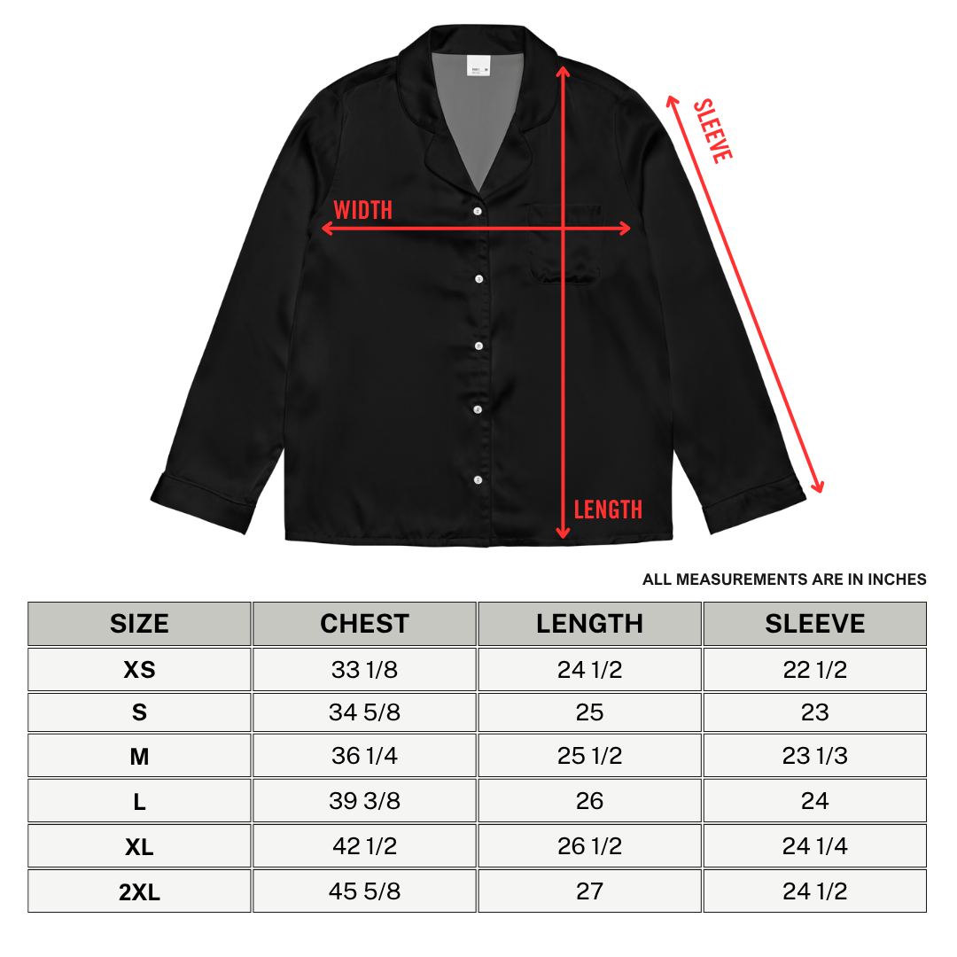 A chilling twist on winter coziness. The Skulldrift Silky Pajama Top features delicate snowflakes made of skulls, spiders, and crosses — perfect for gothic holiday nights.