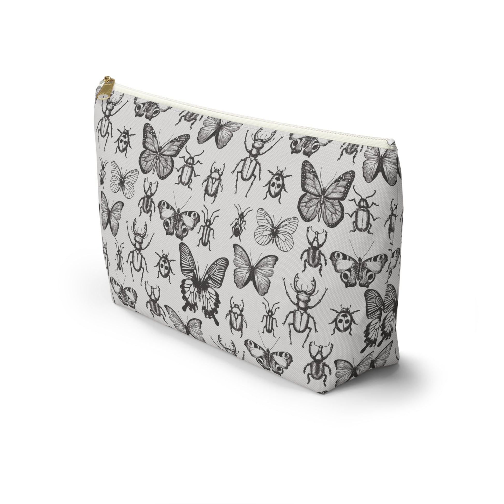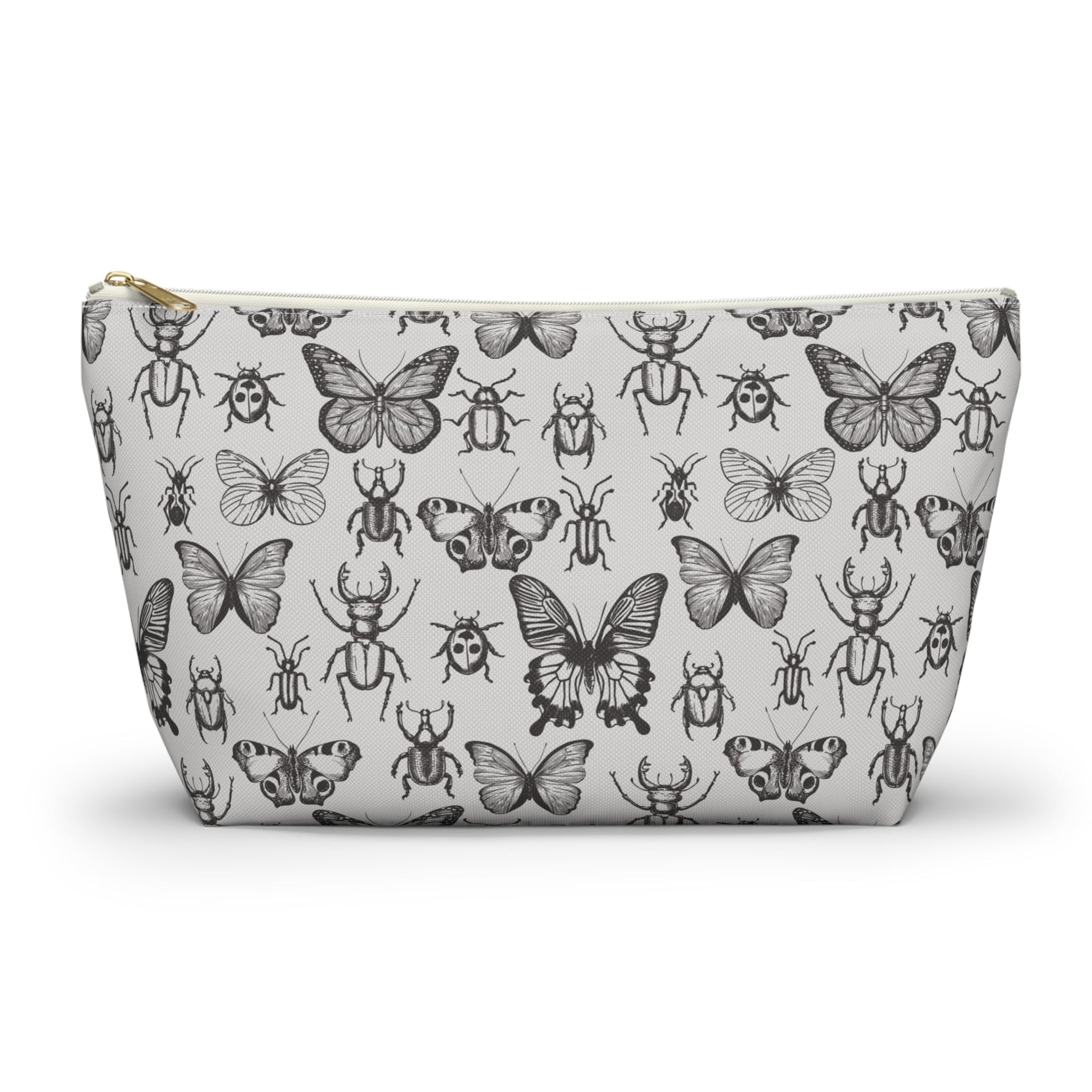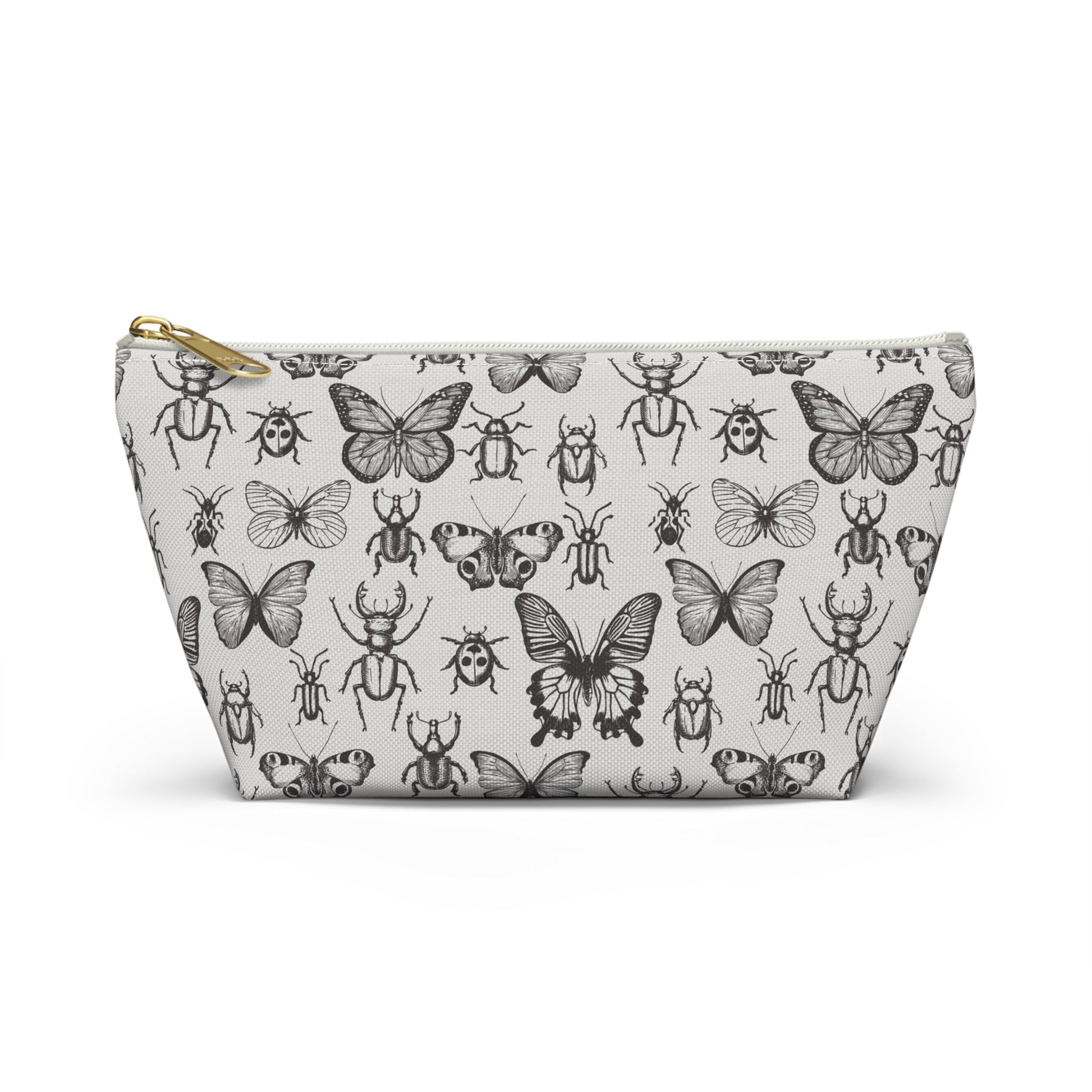 Curious minds, dark hearts 🖤—meet the Specimen Study pouch. Inspired by vintage entomology prints, this cream-and-black design features delicately detailed butterflies, beetles, and other eerie curiosities from nature’s cabinet.